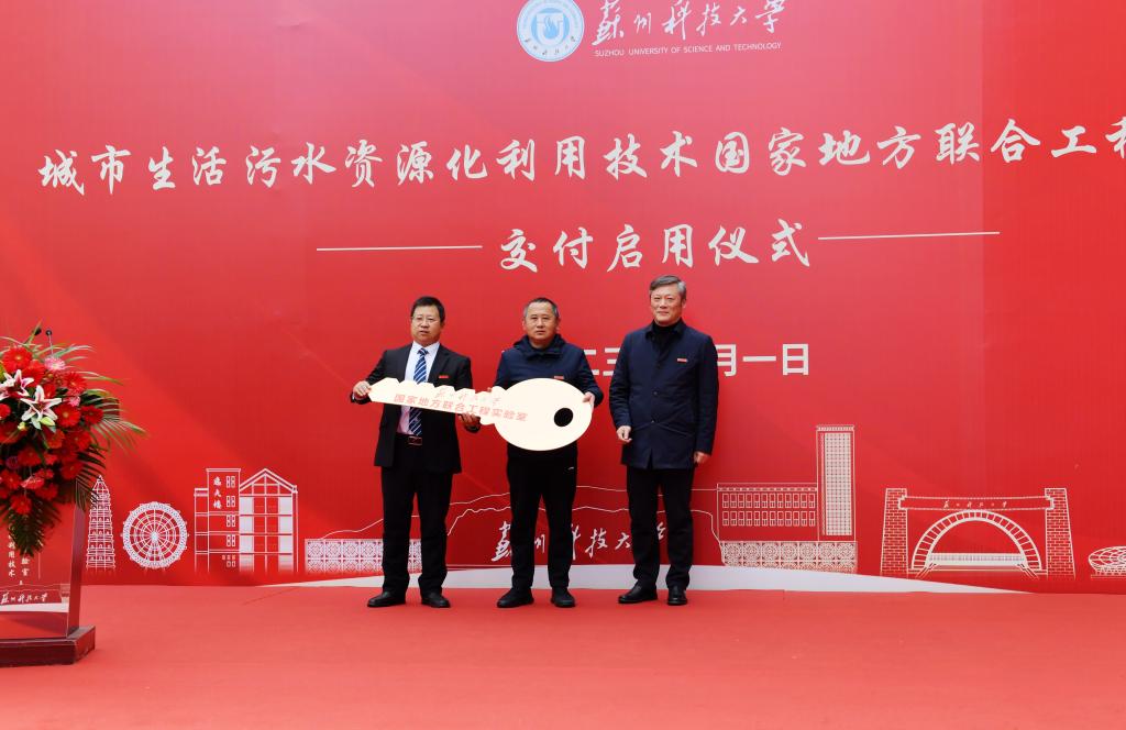 3月1日上午,伟德国际1946bv城市生活污水资源化利用技术国家地方联合工程实验室交付启用仪式在伟德国际1946bv石湖校区举行。苏州高新区管委会副主任、虎丘区副区长何宁,苏州市发展和改革委员会四级调研员王荣江,苏州市生态环境局党组副书记、副局长王承武,校党委书记姜朋明,校党委副书记、校长顾菊平,党委常委、副校长李勇,苏州市环保产业协会会长、江苏苏净集团有限公司总经理马楫,清华苏州环境创新研究院科研人才部主任迟茜,苏州科特环保股份有限公司总经理马三剑出席仪式。学校相关部门负责人及bevitor伟德国际1946师生代表参加仪式。校党委常委、副校长张新亚主持仪式。