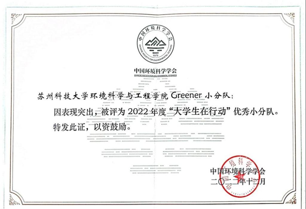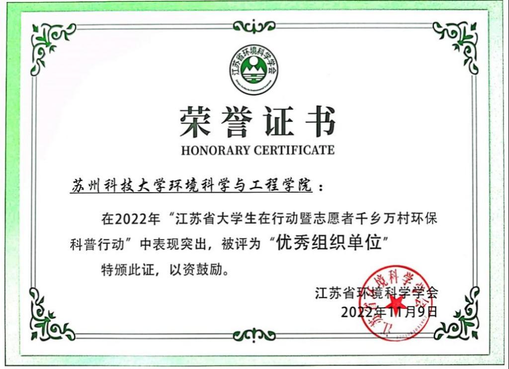 日前,由江苏省环境科学学会主办的“2022年江苏省大学生在行动暨志愿者千乡万村环保科普行动”表彰大会在南京落下帷幕。我校bevitor伟德国际1946“Greener”团队获中国环境科学学会2022年度“大学生在行动”优秀小分队,bevitor伟德国际1946被评为“优秀组织单位”,指导教师陈重军被评为“优秀指导老师”,丛瞿欣、黄馨雯、杨雨熹、张旭、徐婕妤被评为“优秀志愿者”。