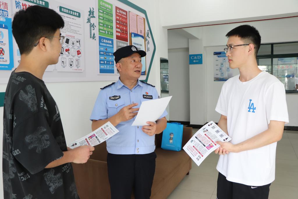 驻校警官夏文虎等人深入学生宿舍开展防诈骗专题宣传活动。通过政策宣讲、实际案例分析、遇险遇困报警途径告知和宣传海报张贴等途径,使我院学生掌握诈骗基本套路与处置措施,进一步提高防诈骗意识。