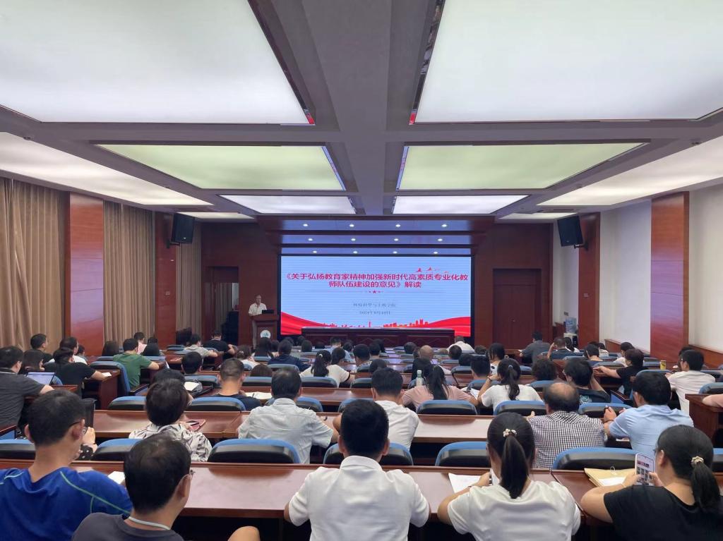 为了深入贯彻落实党的教育方针,响应国家关于加强新时代高素质专业化教师队伍建设的号召,环境学院于9月18日在学院二楼报告厅举办了学习《中共中央国务院关于弘扬教育家精神加强新时代高素质专业化教师队伍建设的意见》大会。会议由学院党委书记费忠民主持,学院全体教职工参加。