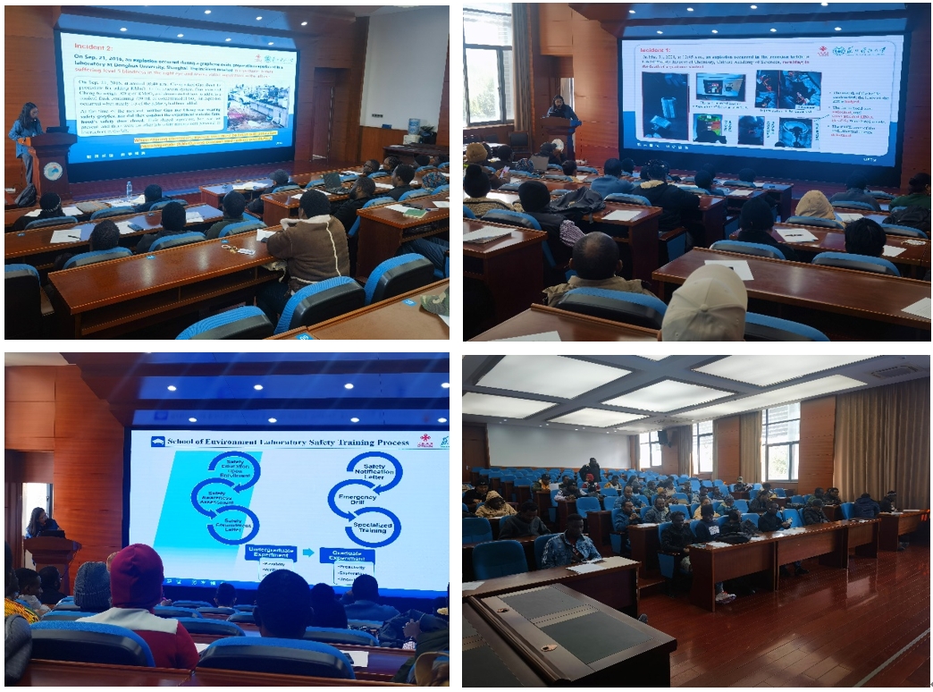 随着国际化的发展,环境学院面临日益增多的国际留学生群体。随着学习的深入,部分留学生将陆续进入实验室,开展科学研究。环境学院于2024年11月22日开展了针对留学生的全英文实验室安全培训,坚决堵住实验室安全培训教育的漏洞。培训由刘文如院长主导,单苏洁老师主讲,针对实验室安全管理的常识和要求,给留学生们进行了系统的普及。尤其是药品安全、气体安全、用电安全、行为安全等方面,都对留学生群体提出了明确的实验室安全管理要求。