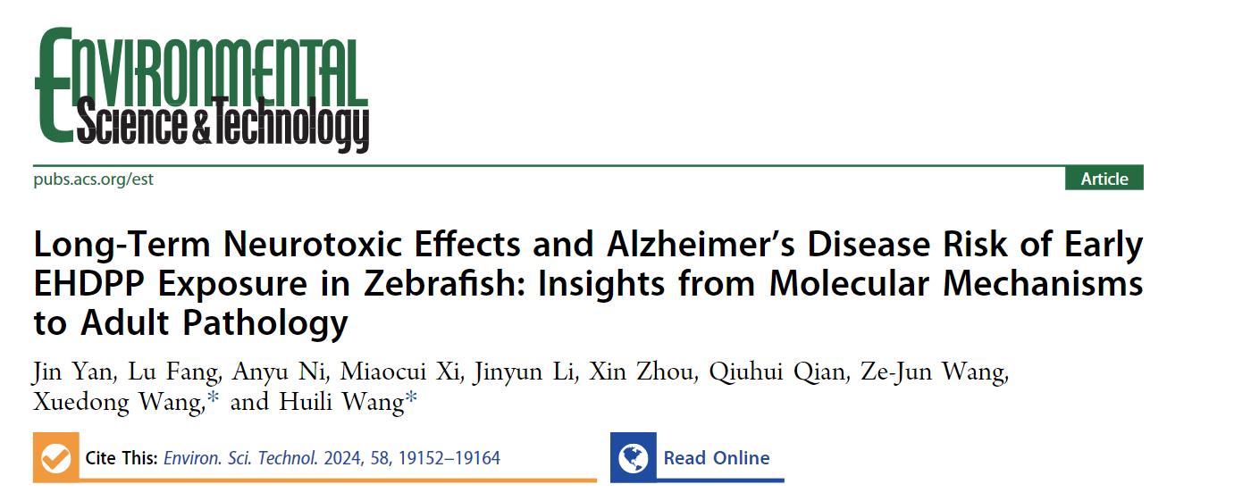 近日,我校bevitor伟德国际1946环境监测与毒理研究团队,在环境类顶尖学术期刊Environmental Science & Technology上发表研究论文两篇,一篇题目为“Long-Term Neurotoxic Effects and Alzheimer’s Disease Risk of Early EHDPP Exposure in Zebrafish: Insights from Molecular Mechanisms to Adult Pathology”,环境学院教师闫瑾为第一作者,王慧利和王学东老师为并列通讯作者。