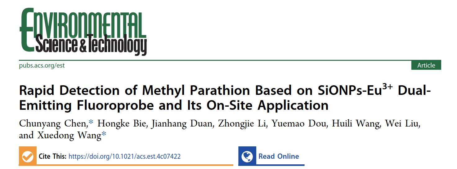 另一篇题目为“Rapid Detection of Methyl Parathion Based on SiONPs-Eu3+ Dual-emitting Fluoroprobe and Its On-Site Application”,环境学院教师谌春阳为第一作者,王学东老师为通讯作者。