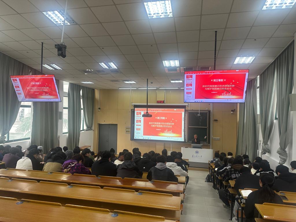 费忠民以“新时代我国意识形态领域形势与维护我国意识形态安全”为主题,结合具体案例,围绕“新时代新征程我国意识形态领域的基本形势”、“新时代新征程我国意识形态安全面临的主要挑战”、“新时代新征程维护我国意识形态安全的主要举措”三个方面开展讲授。费忠民指出,意识形态工作是党的一项极端重要的工作,是为国家立心、为民族立魂的工作。实现中华民族伟大复兴,需要充分发挥社会主义意识形态的引领功能和凝聚功能,为中华民族伟大复兴汇聚磅礴伟力。