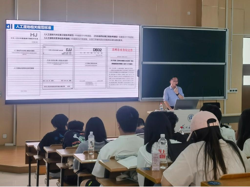 为深化产教融合,拓展学生专业视野,423日下午,悉地(苏州)勘察设计顾问有限公司徐同春工程师应邀来校,为环境工程专业师生作了关于《人工湿地系统设计》的学术报告。报告会由环工系系主任袁怡主持,23级环工系全体学生及多位老师到场聆听。