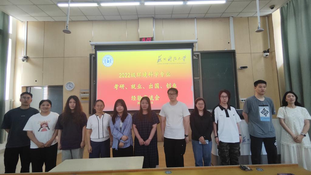 在学院党政领导关心指导下,为提高学生培养质量,冲刺环境科学2025届同时提前部署2026届就业工作,环科系和学工办联合举行学生培养经验交流分享会。分享代表为目前在南京大学攻读硕士的2024届毕业生范子怡,2025届考取复旦大学、河海大学、南京师范大学和本校的杨玉玺、蔡应凡、董泽兴和周子瑞同学以及收到多所名校offer的张馨蕾同学,自强不息的创业同学刘妍。会议由系主任梁媛主持,系专任教师,辅导员以及2022级环科专业全体学生共同参与。