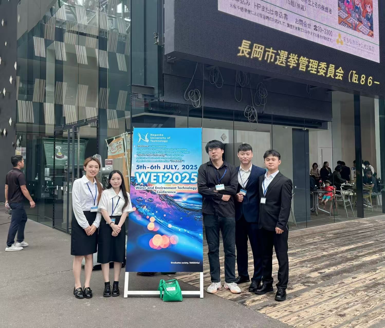 近日,我院孔哲老师带领2023级研究生邓梓萱、牛静萍、焦飞飞和2024级研究生周俊杰赴日本新泻县长冈市参加由日本水环境协会举办的2025年度水环境技术大会(Water and Environment Technology Conference,简称WET 2025)。此次会议汇聚了200多位来自全球各地的水环境技术领域优秀学者与青年才俊。会上,我院四位研究生表现活跃,分别做了题目为“Successful Start-up and Long-term Operation of Anaerobic Digestion of N, N-Dimethylformamide (DMF) Using an Expanded Granular Sludge Blanket Reactor”、“A Novel Drawer-Type Multilayer Biofilter with Pyrite-Based Autotrophic Denitrification for Post-Treatment of Digestate Effluent Pollutants from N, N-Dimethylformamide-Containing Industrial Wastewater”、“Effective Treatment of Real Rural Wastewater for COD, Nitrogen and Phosphorus Removal by a Novel Constructed Wetland Integrated with Pyrite Autotrophic Denitrification”、“Anaerobic Digestion and Denitrification-Enhanced Organic Removal System Integrated with Partial Nitritation/Anammox Process for Treatment of Real Membrane-Manufacturing Wastewater”的口头汇报与海报展示。四位研究生的报告聚焦行业难点,展示了扎实的研究功底与创新思维,引起了与会专家的广泛兴趣与讨论。