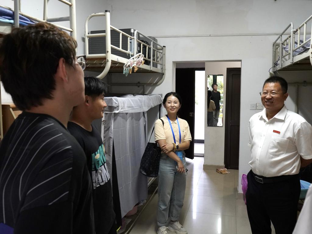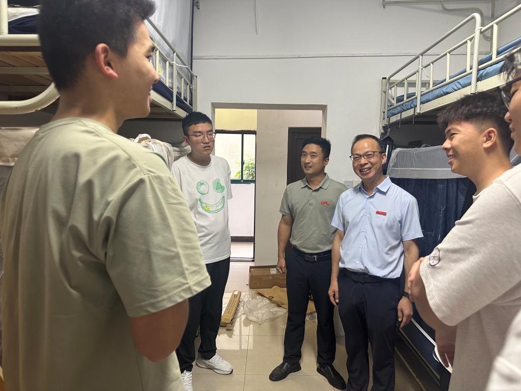 在走访过程中,学院党委书记潘杨与同学们亲切交谈,他寄语新生要坚定理想信念,尽快完成角色转变,珍惜宝贵的大学时光,把握时代机遇,在未来四年里不断提升综合素养,实现全面发展。院长李大鹏从专业认知与学业发展角度向新生介绍了学院的学科特色与发展前景,鼓励大家要扎实打好专业基础,勇于探索创新,提前做好学业与职业规划,为未来的成长成才奠定坚实基础。全体辅导员细致查看了每间宿舍的设施与环境,耐心询问新生入住感受及是否存在生活困难,并就同学们关心的校园生活问题进行了细致解答,叮嘱大家要互相关心、尽快适应,营造温馨和谐的宿舍氛围。