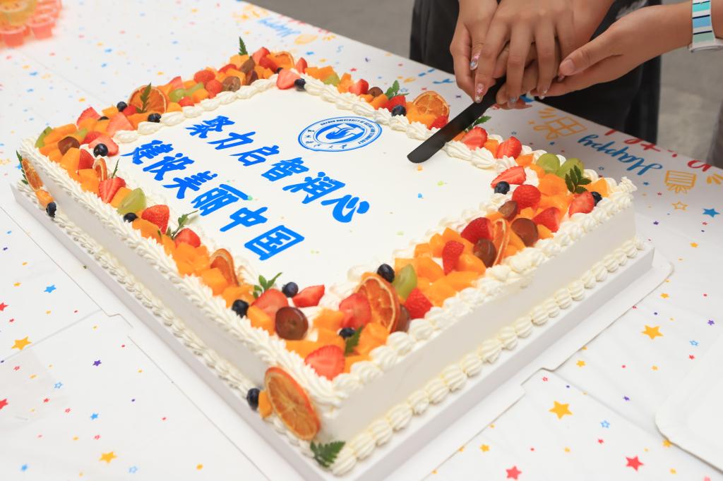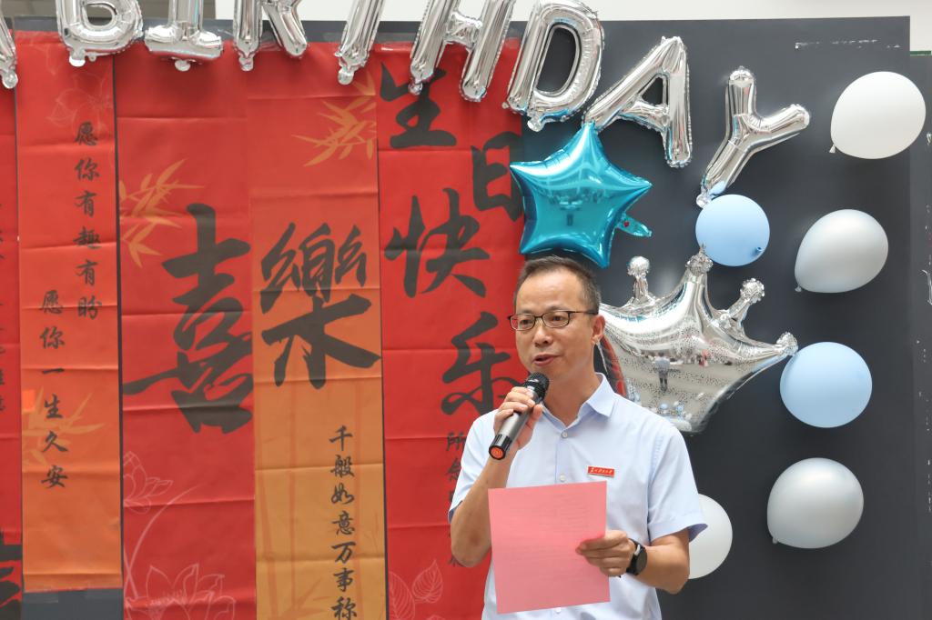 环境学院党委书记潘杨致辞,向过生日的师生致以祝福,并鼓励新同学们珍惜大学时光,脚踏实地、勤勉奋进。学生处副处长陈琰与新生代表朱睿琦一同为大家切分蛋糕。商学院新生李良作为代表发言,他表示报道第一天与老师、同学们共庆生日,倍感温暖,期待在这个有爱的大家庭中踏实学习、不断成长,度过充实而有意义的大学时光。