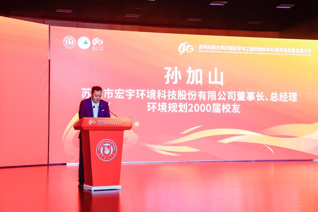 在校友代表发言环节,2000届校友、苏州市宏宇环境科技股份有限公司董事长孙加山,2001届校友、云南师范大学能源与环境科学学院院长、博士生导师陈玉保,2001届校友、东华大学bevitor伟德国际1946副院长、博士生导师李方和2013届校友、东南大学建筑学院研究员王俊淇,深情回顾了在校求学经历与工作经历,纷纷表示,母校始终是促进学子前行的动力和坚强后盾,激励他们在各自岗位上践行环保使命,为母校发展与行业进步贡献力量。