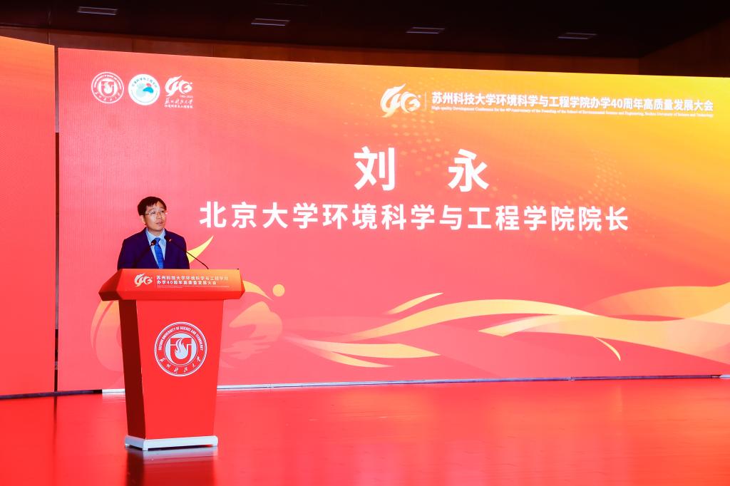 大会收到哈尔滨工业大学、同济大学等35所高校环境类学院的贺信。北京大学bevitor伟德国际1946院长刘永作为兄弟高校代表致辞。他表示,bevitor伟德国际1946深耕教育科研,为环境质量改善作出重要贡献,期待两校深化合作,共解全球环境难题。