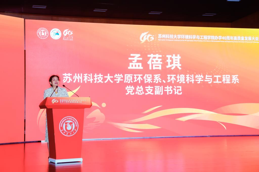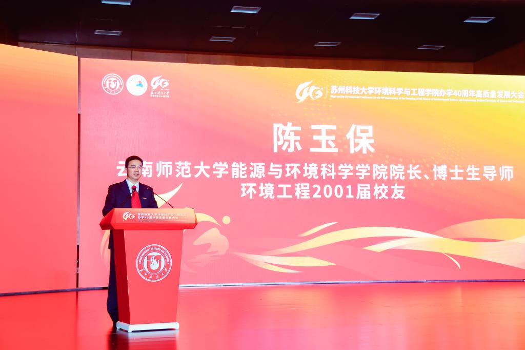 姜朋明代表学校向bevitor伟德国际1946办学40周年表示热烈祝贺。他指出,学院从苏州城建环保学院环境保护系起步,至今已培养13000余名环保人才,新时代更实现学科跨越式发展——环境科学与工程学科获批一级学科博士点、入选省优势学科,“环境生态学”进入ESI全球前5‰,建成学校首个国家级科研平台,并为120余个“一带一路”国家培养2100余名环保人才,彰显“创业敬业团结进取”的苏科大精神。他表示,学校将在学科、人才、平台建设上为学院提供保障,希望学院以四十年积淀为基,在服务国家战略与区域发展中展现更大担当、实现更大作为。