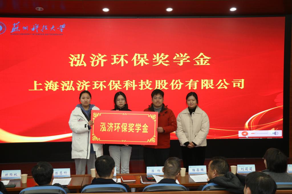 顾银君介绍了学院一年来在人才培养、学科竞赛、资助育人等方面取得的工作成效。各企业负责人和出席活动领导为获奖学生代表颁发获奖证书。获奖学生代表袁润和皮佳颖分享了青春奋斗故事。潘杨向长期以来关心支持学院发展的企业表示感谢,对获奖同学取得的成绩予以肯定,希望获奖学子深耕环保领域、积极回馈社会,鼓励全体同学以榜样为标杆、奋勇争先。