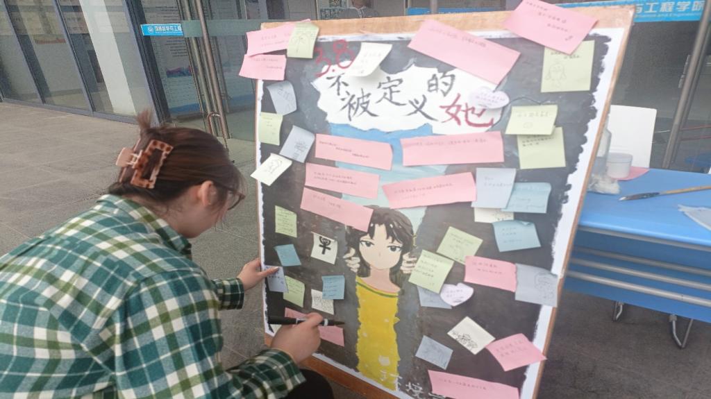 3月8日上午,为庆祝妇女节,丰富学生的课余生活,环境学院学生会于环境楼门口开展了“不被定义的她”主题活动。