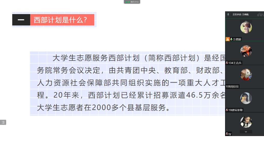 为进一步弘扬志愿服务精神,引导和鼓励大学毕业生到基层工作,主动融入发展大局,积极投身乡村振兴,4月27日晚,bevitor伟德国际1946团委面向2023届毕业生召开了线上“西部计划”、“志愿服务乡村振兴计划”宣讲会。