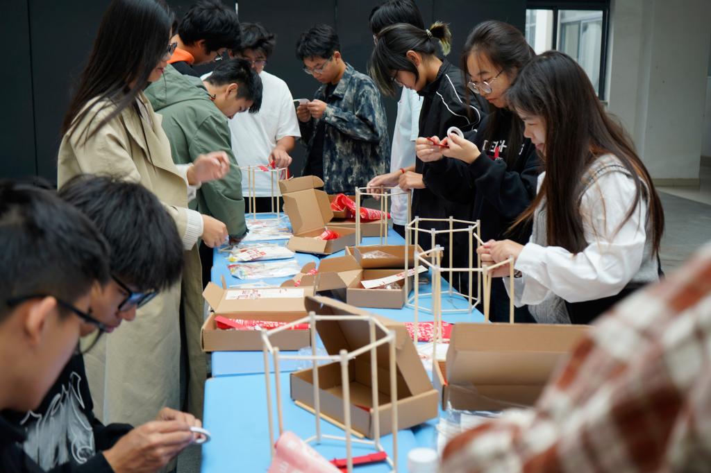 本次活动的亮点在于,所有灯笼均由学生们亲手制作,他们运用自己的想象力和创造力,将传统与现代元素巧妙结合,制作出了寓意深远的灯笼作品。灯笼以新中国成立75周年为主题,巧妙融入了“75”字样和国旗元素,表达了对祖国的热爱和祝福。
