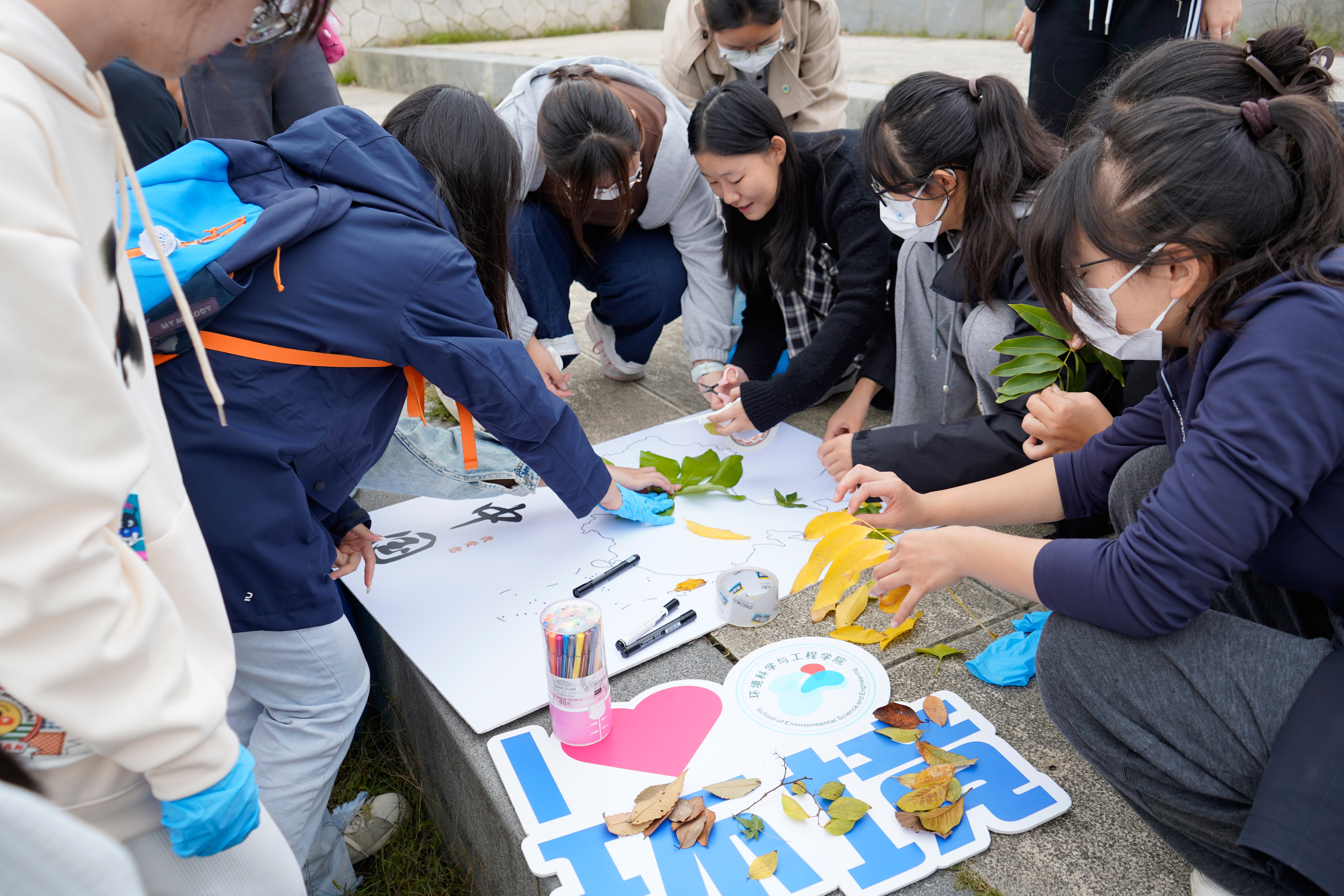 在环境学院前,涓流青年学习社成员留下洋溢着青春活力的合影后,便迈着轻快的步伐,向石湖公园进发。活动一开始,按照事先的精心策划,成员们迅速分组,有序捡拾沿湖及公园内散落的垃圾碎屑。尽管已是秋冬时节,但成员们的热情却如同盛夏的骄阳,丝毫不减。紧接着,同学们开始了“采集秋叶拼贴中国版图”的环节。他们用手中的落叶,拼贴出中国版图的形状,寄托着对祖国繁荣昌盛的美好祝愿。公园里的小朋友们也被这份热情所感染,积极参与,用他们稚嫩的小手,以行动表达对祖国的热爱。不仅如此,成员们还亲手制作了属于自己的秋日纪念——落叶书签,留下了一份独特的秋日回忆。活动接近尾声时,大家高举着鲜艳的红旗,在碧空下,红旗迎风招展,伴随着响亮的口号声,活动在一片热烈而和谐的氛围中圆满落幕。