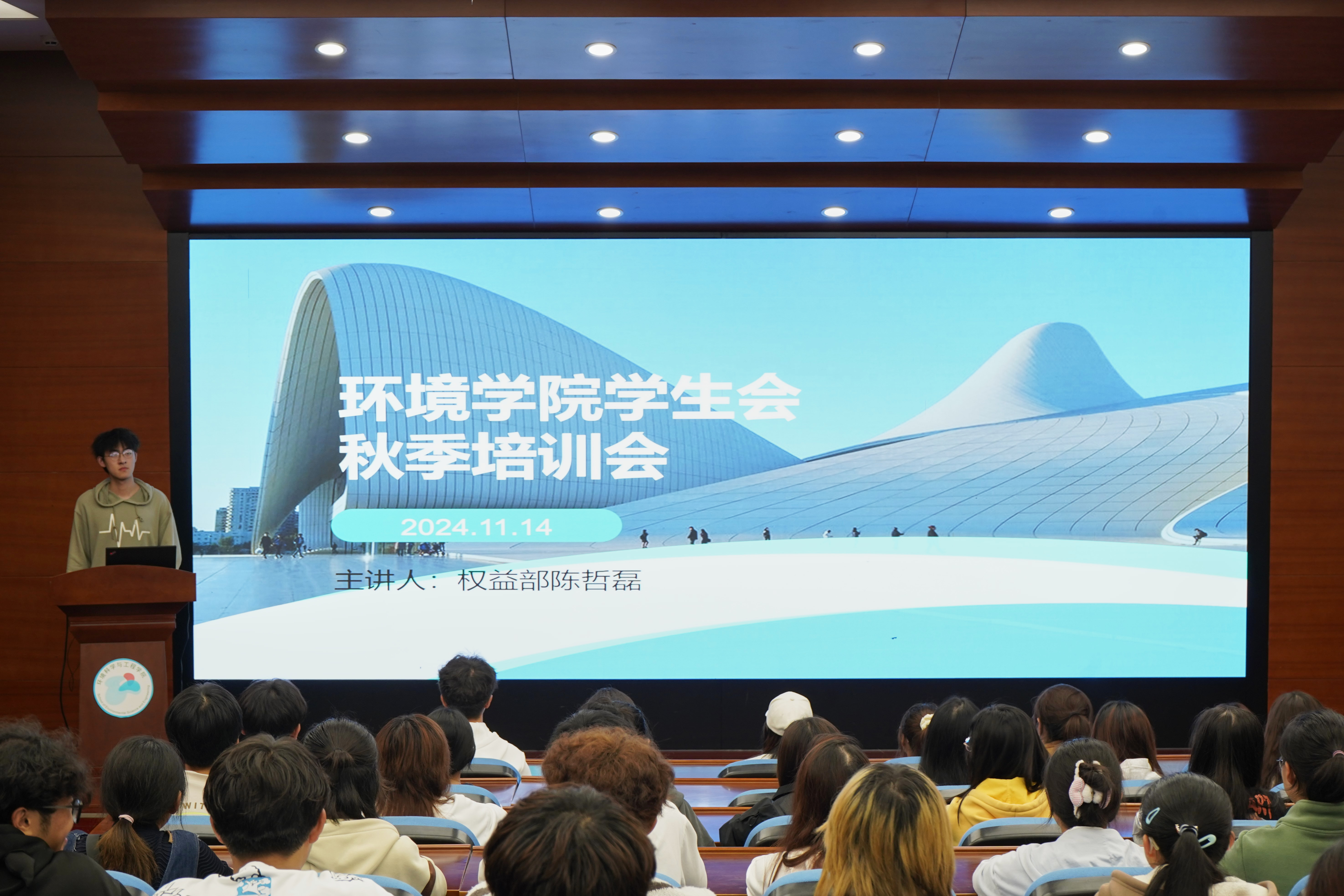 环境学院学生会于11月14日在环境楼二楼报告厅举办了本年度的秋季培训会。此次培训会以“强化时间管理,提升工作效率”为核心主题,旨在为学生会成员提供一套系统化的时间管理和高效工作策略。