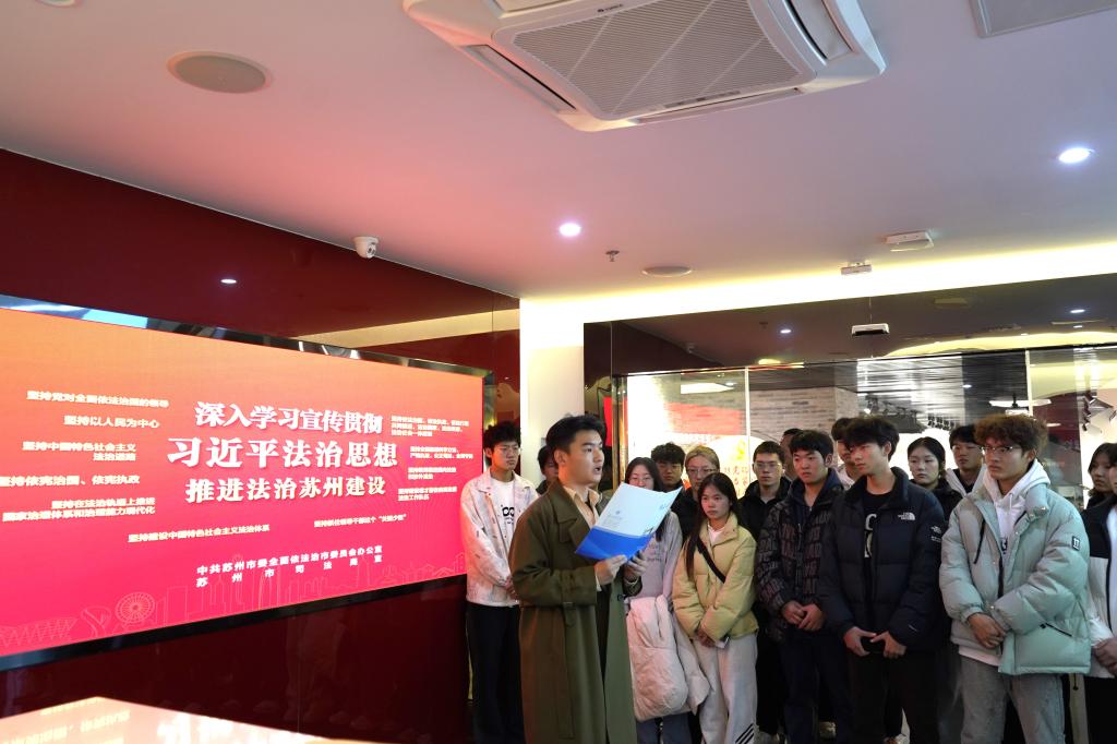 各族师生前往苏州市宪法宣传教育馆,详细了解宪法诞生、宪法演进历史及与苏州的关系,全面增强自身法治意识和法治观念,深刻领会法治苏州建设的实践成果。在民族团结进步教育主题团日活动环节,环境学院涓流青年学习社成员周金诺进行《宪法撑持民族睦,团结构筑国家兴》主题演讲,分享了宪法治理下各民族团结奋斗、繁荣发展的事迹,使各族青年在参与和体会法治文化的实践中提升对中华民族共同体的认同感。