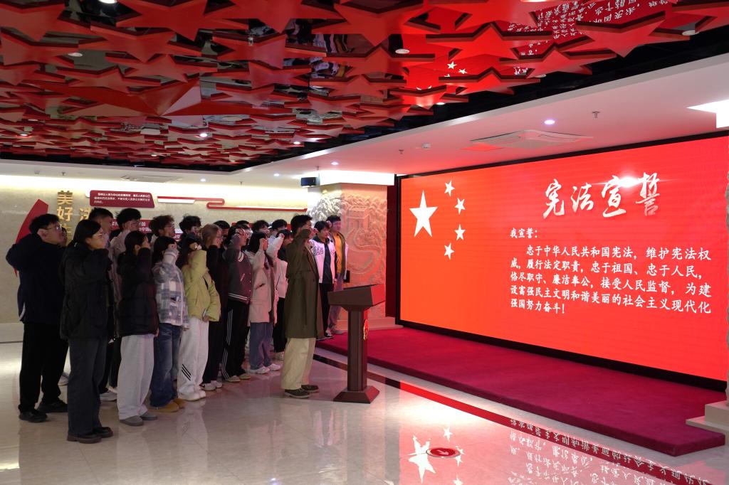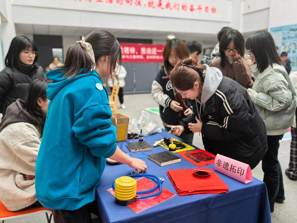 在环境学院一楼大厅,师生开展宪法知识飞行棋、Emoji与宪法:趣味猜猜猜、“宪法卫士”纪念书签DIY和非遗拓印等活动,在体验非遗技艺、制作精美文创的过程中学习宪法、遵守宪法、宣传宪法、捍卫宪法,引导各民族师生矢志成为社会主义法治的忠实崇尚者、自觉遵守者、坚定捍卫者,共同为法治校园建设添砖加瓦、为社会主义法治事业奋斗终身。