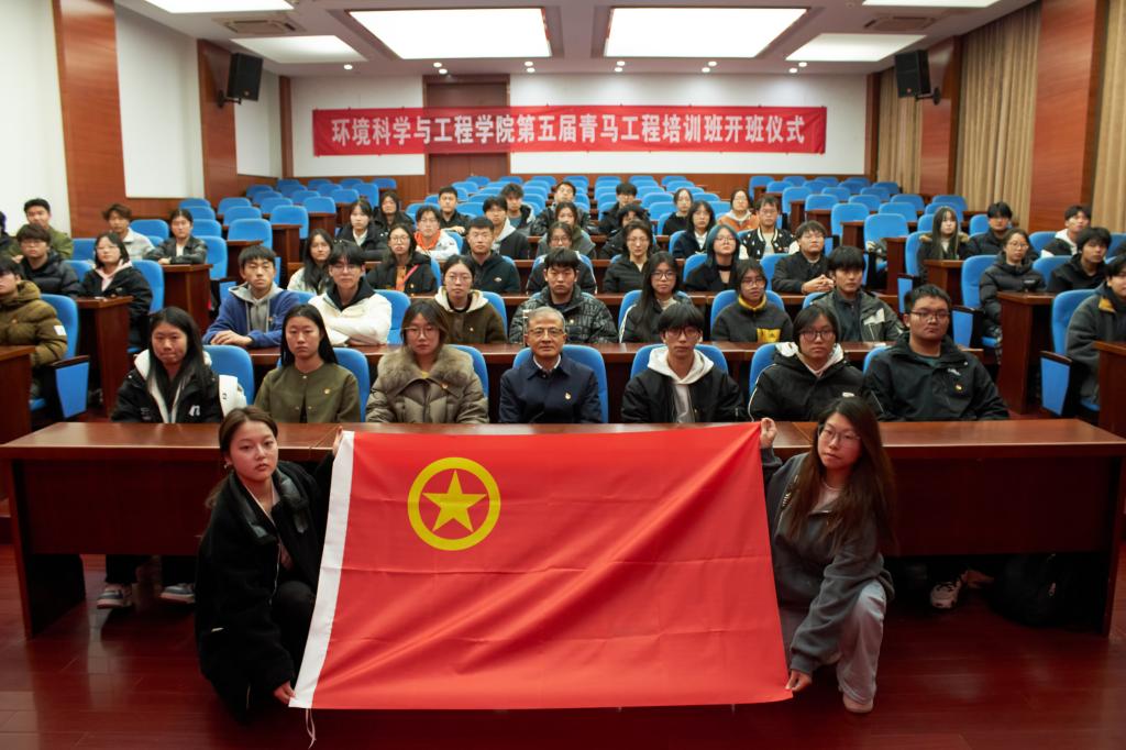 在开班仪式上,任云高发表开班致辞,他向学员们详细阐述了青马工程的内涵及其成立背景,并带领新一届学员回顾了我院青马工程取得的显著成就。针对学生骨干队伍建设,任书记深入分析了学生干部在时间管理、团队协作、创新解决问题以及心理韧性等方面的不足,并提出了三点要求:坚定理想信念、勤奋学习实践、勇于担当作为。任书记强调,同学们应成为马克思主义的忠实信仰者、积极传播者和坚定践行者。环境学院团委副书记葛劲松作为优秀学生代表,与新学员分享了他对青马工程的理解和共青团员身份的认知,并简述了他在青马工程中的成长与收获。他指出青马工程班的经历是学习和生活成功的动力源泉,他鼓励大家坚定地在人生的道路上前行,谱写出各自辉煌的人生篇章,为实现中华民族伟大复兴而不懈奋斗。