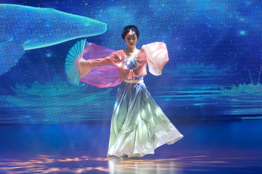 本次活动以精彩绝伦的艺术盛会为观众带来了一场视觉盛宴,来自环境、地测、电子和外国语学院的学生参与了晚会演出。晚会以一支欢快的舞蹈开始,舞者们用灵动的舞姿表达了对新生的热烈欢迎和对未来的美好期待。随后,一系列精心准备的节目陆续上演,包括歌曲、舞蹈、相声、朗诵等。
