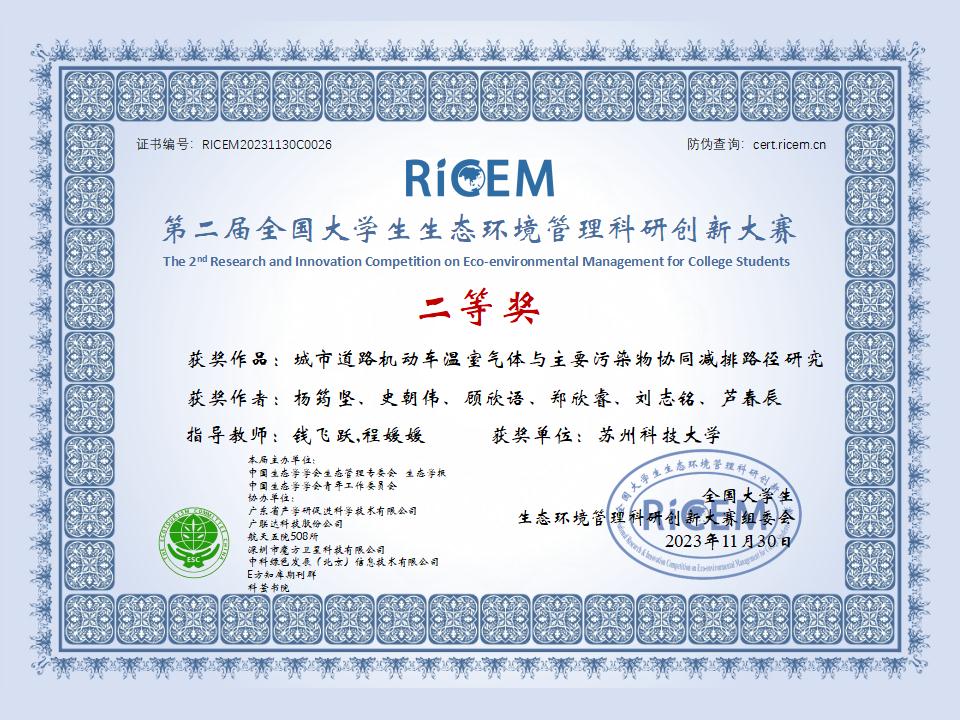 近日,bevitor伟德国际1946环境类专业本科生杨筠坚、史朝伟、顾欣语等6人完成的作品“城市道路机动车温室气体与主要污染物协同减排路径研究”,在第二届全国大学生生态环境管理科研创新大赛中荣获二等奖,团队指导教师为钱飞跃、程媛媛副教授。