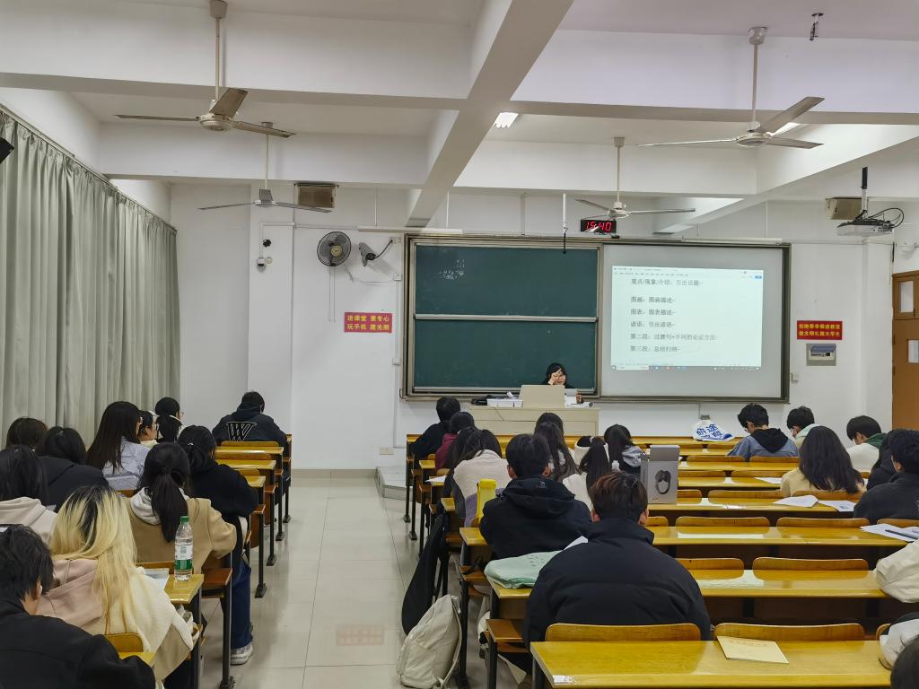 讲座伊始,党天琪老师深入分析了四六级考试的重要性以及其在未来学业和职业发展中的潜在影响,让同学们从思想上高度重视此次考试。随后,她详细解读了四六级考试的题型结构,包括听力、阅读、写作和翻译等各个部分的特点与分值分布。在听力部分,党老师分享了实用的听力技巧,如提前浏览题目、抓住关键词、学会预测听力内容等,同时还推荐了一些有效的听力训练资源与方法,帮助同学们提高听力理解能力。对于阅读板块,她着重强调了快速阅读技巧、如何精准定位答案以及理解长难句的方法,结合实例深入浅出地讲解,让同学们掌握了高效的阅读策略。在写作与翻译方面,展示了不同类型作文的写作框架与常用句式,鼓励同学们积累好词好句,并通过现场练习与点评,让同学们直观地感受到写作与翻译水平的提升空间。
