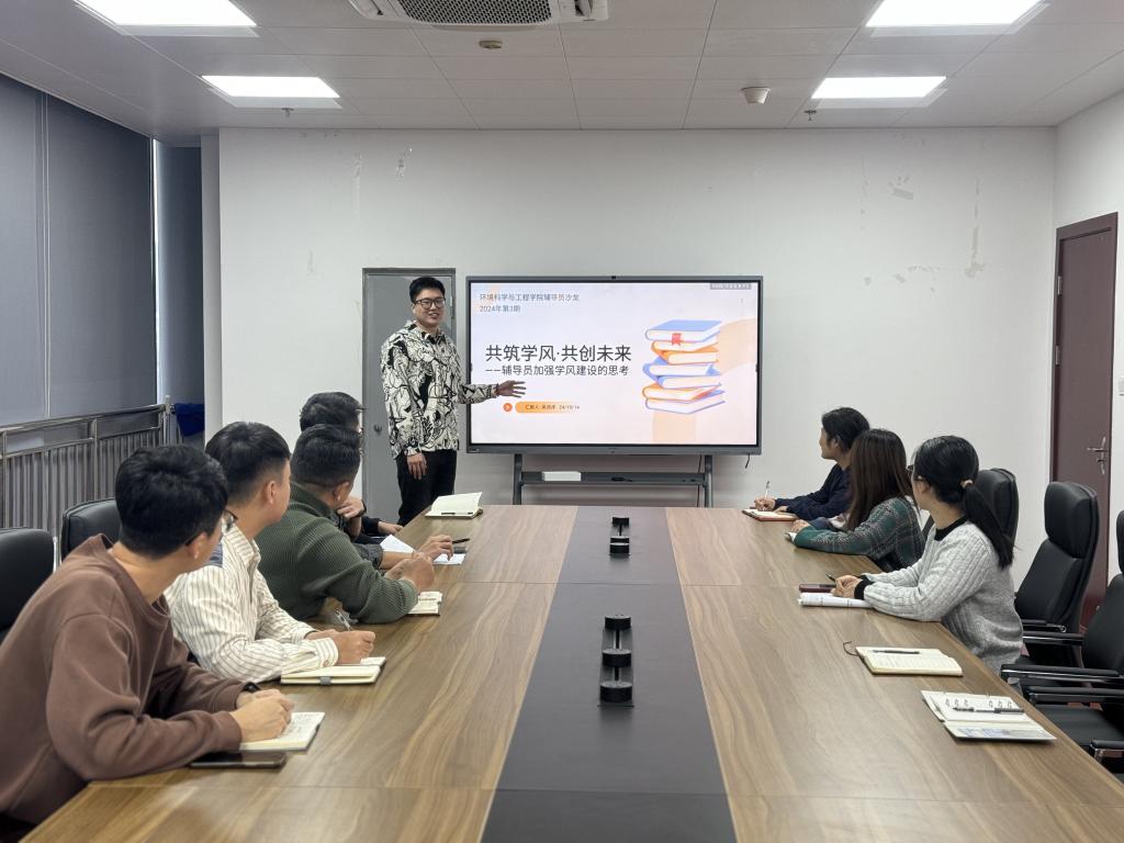 为了更好地提升学院学风,结合本科教育教学审核评估的相关工作,环境学院学工于10月14日召开了本年度第三期辅导员沙龙,围绕议题“共筑学风 共创未来——辅导员加强学风建设的思考”展开交流讨论。本次沙龙的主要分享人是吴润泽老师。