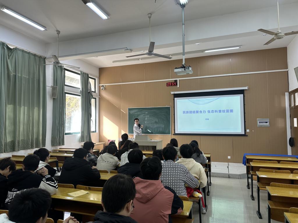 为铸牢中华民族共同体意识,普及生态保护知识,近日,学院以“民族团结聚合力  生态科普绘蓝图”为主题举办了专场宣讲活动。学院邀请专任教师李锋和各族学生代表齐聚一堂,通过案例解析、故事分享等形式,共同探寻民族地区生态保护密码,感悟“绿水青山就是金山银山”的深刻内涵。