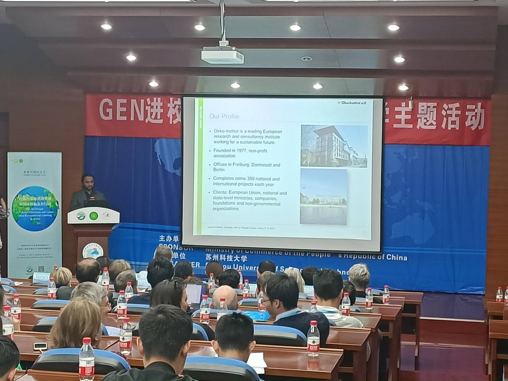 10月22日,“全球环境标志网络(GEN)成员进校园活动”在环境学院举行。联合国GEN主席隆恩先生,中环联合(北京)认证中心有限公司总经理张小丹,GEN会员代表,环境学院党委副书记兼副院长张菡,副院长黄天寅,副院长李大鹏及环境学院学生代表等参加了本次活动。