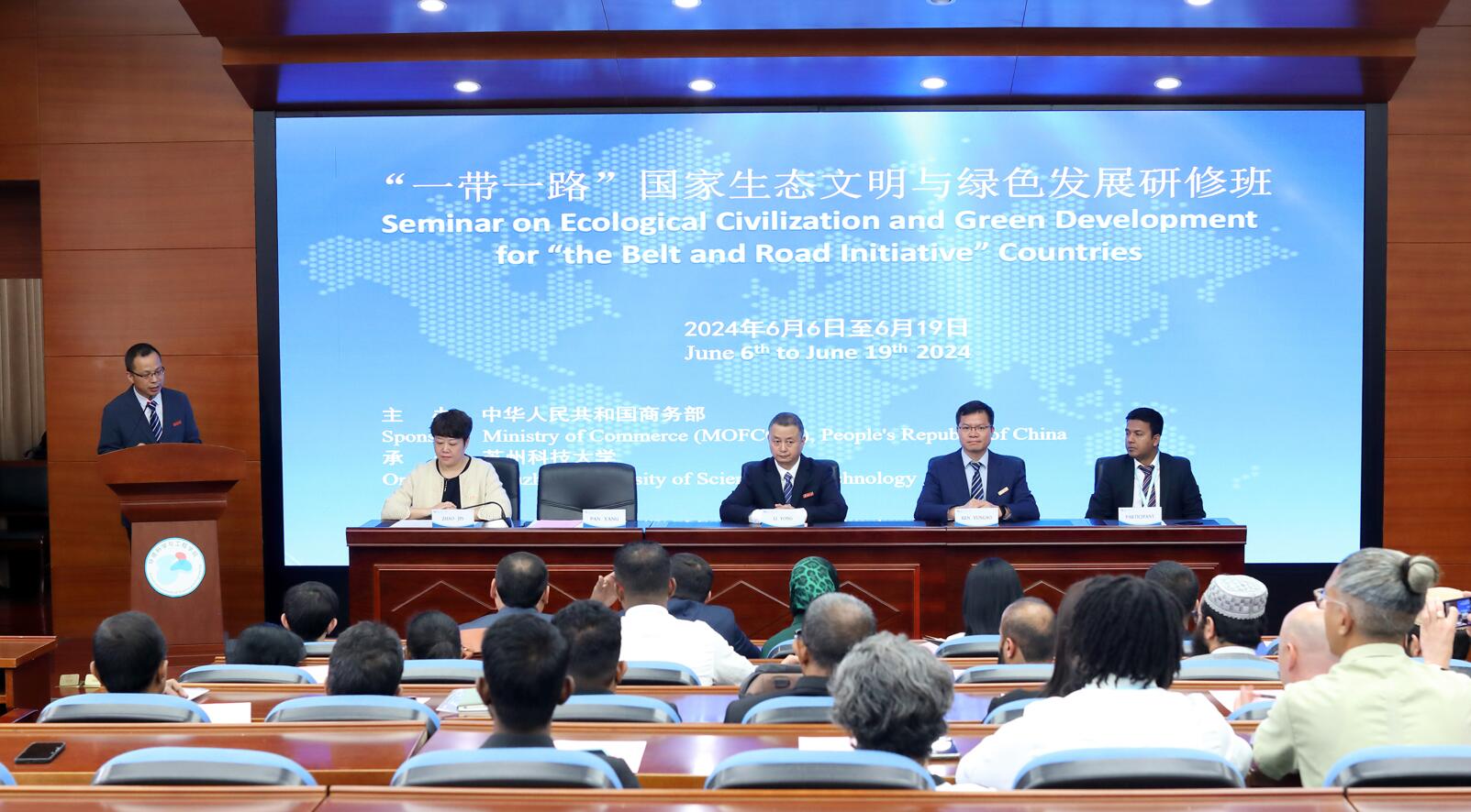 6月6日上午,由商务部主办、我校承办的“多米尼加城市环境卫生处理系统解决方案培训班”和“一带一路”国家生态文明与绿色发展研修班”开班典礼在石湖校区举行。伟德国际1946bv副校长李勇、bevitor伟德国际1946副书记副院长任云高、bevitor伟德国际1946副院长潘杨和全体学员参加了开班典礼。开班典礼由国际合作交流处副处长赵瑾主持。