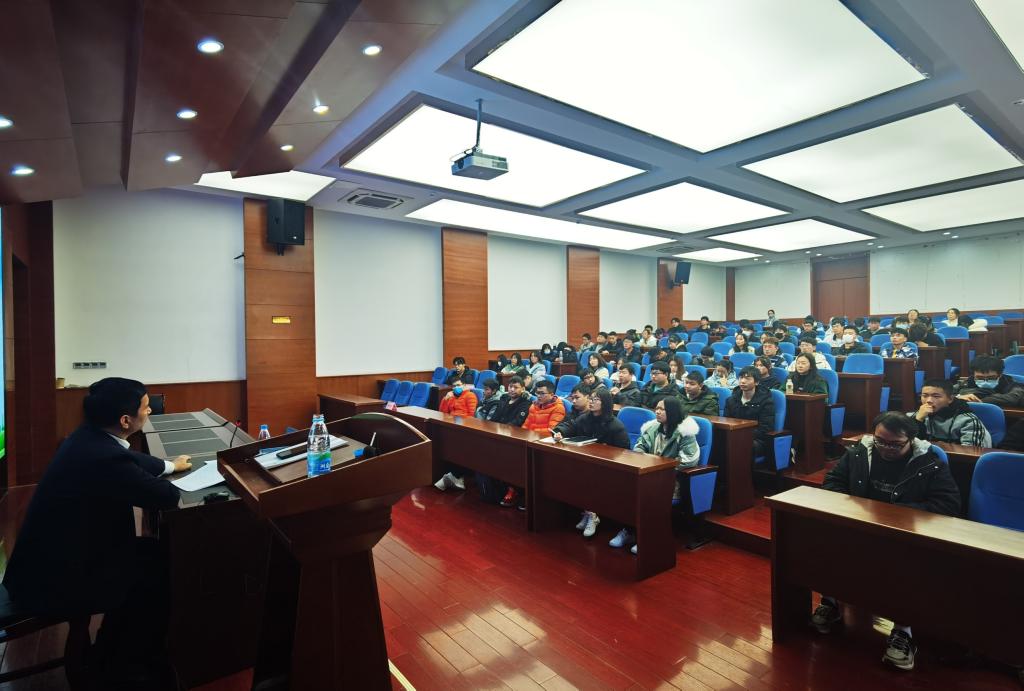 苏州市生态环境局管祥武主任为在校生介绍打好污染防治攻坚战相关情况