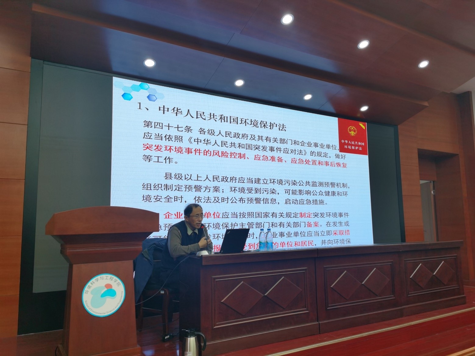 环境类专业学生讲授生态文明思想与环境应急管理